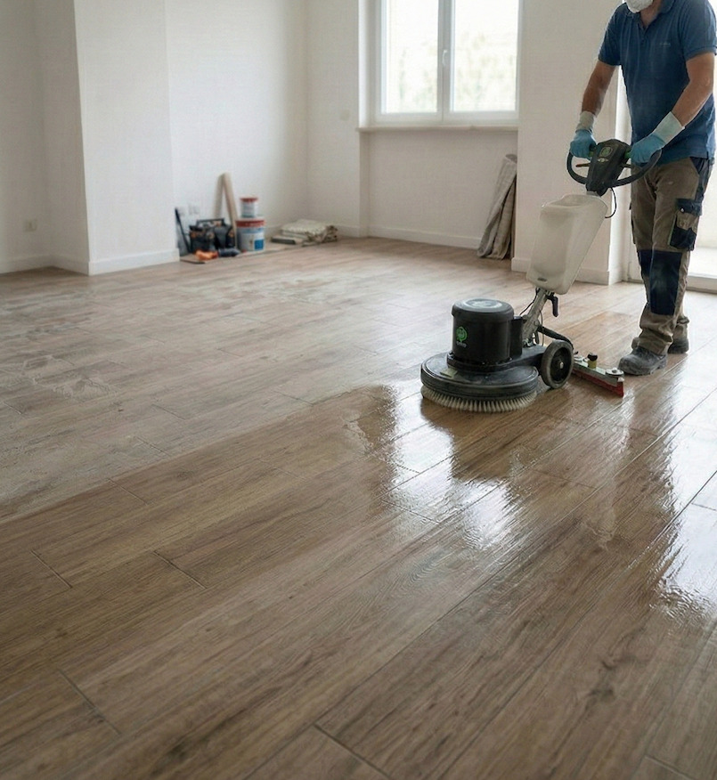 Rimozione a secco: Eliminazione dello sporco grossolano con scopa o aspirapolvere.