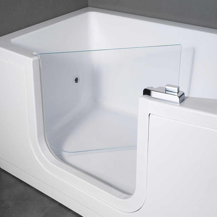 Le vasche con porta di accesso integrata, come la collezione Iris di Novellini, permettono di entrare senza dover superare il bordo tradizionale. Una volta all’interno, seduta ergonomica e fondo antiscivolo garantiscono stabilità e comfort.